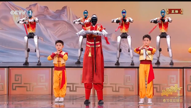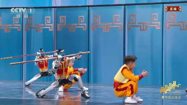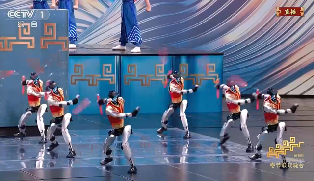 这些机器人在节目中进行了高难度的后空翻和侧手翻,配合演员完成了互动剧情。