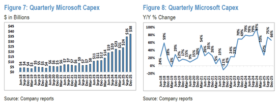 尽管微软在2026财年(截至6月)的资本支出预计也将超过1030亿美元(增长超60%),但分析师预测其仍能产生约660亿美元的自由现金流,足以覆盖其巨额支出。